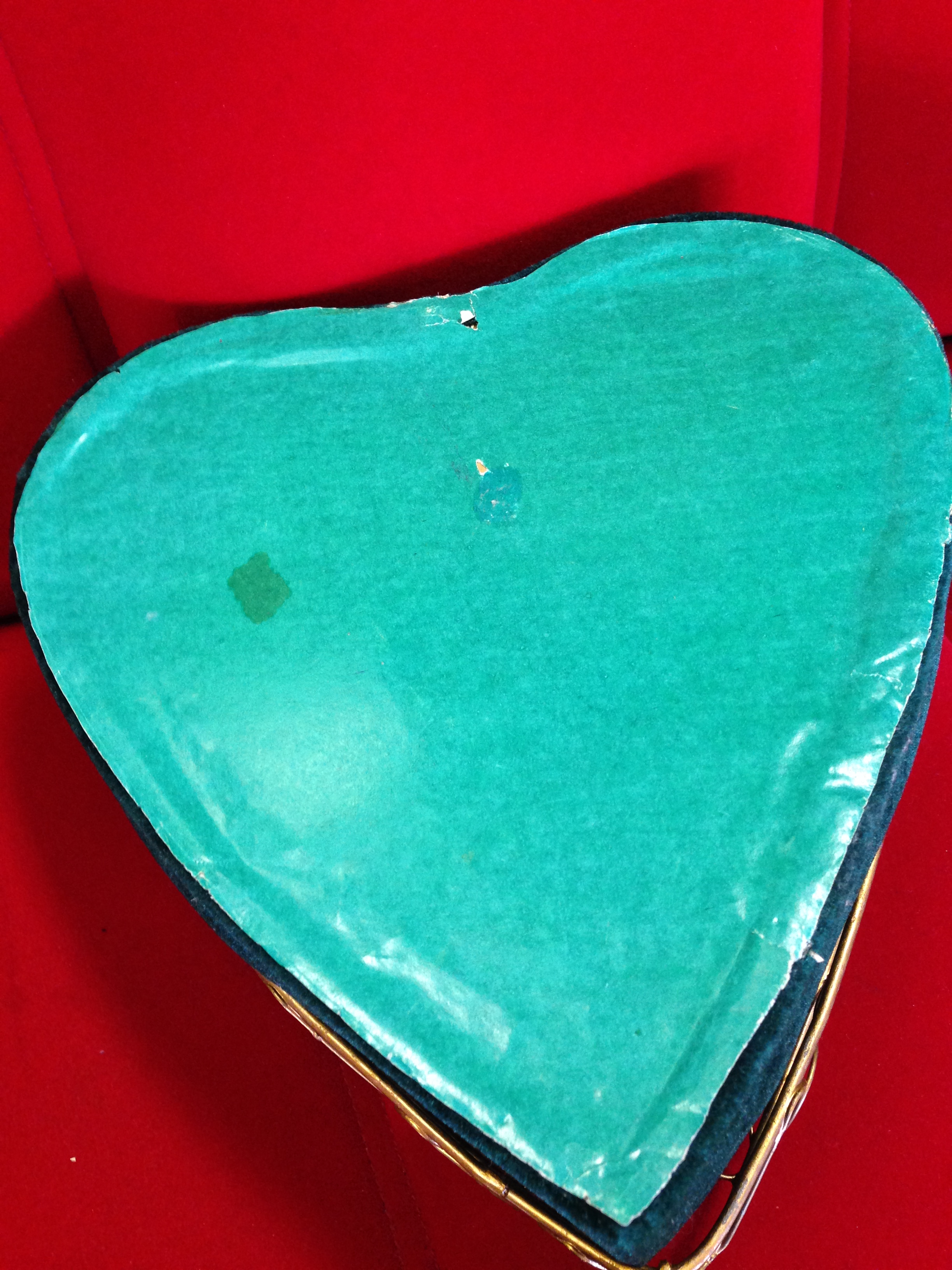This lovely emerald green heart-shaped bed box with lattice cover will make a lovely display piece or gift package: imagine, cookies, fudge, jewelry….