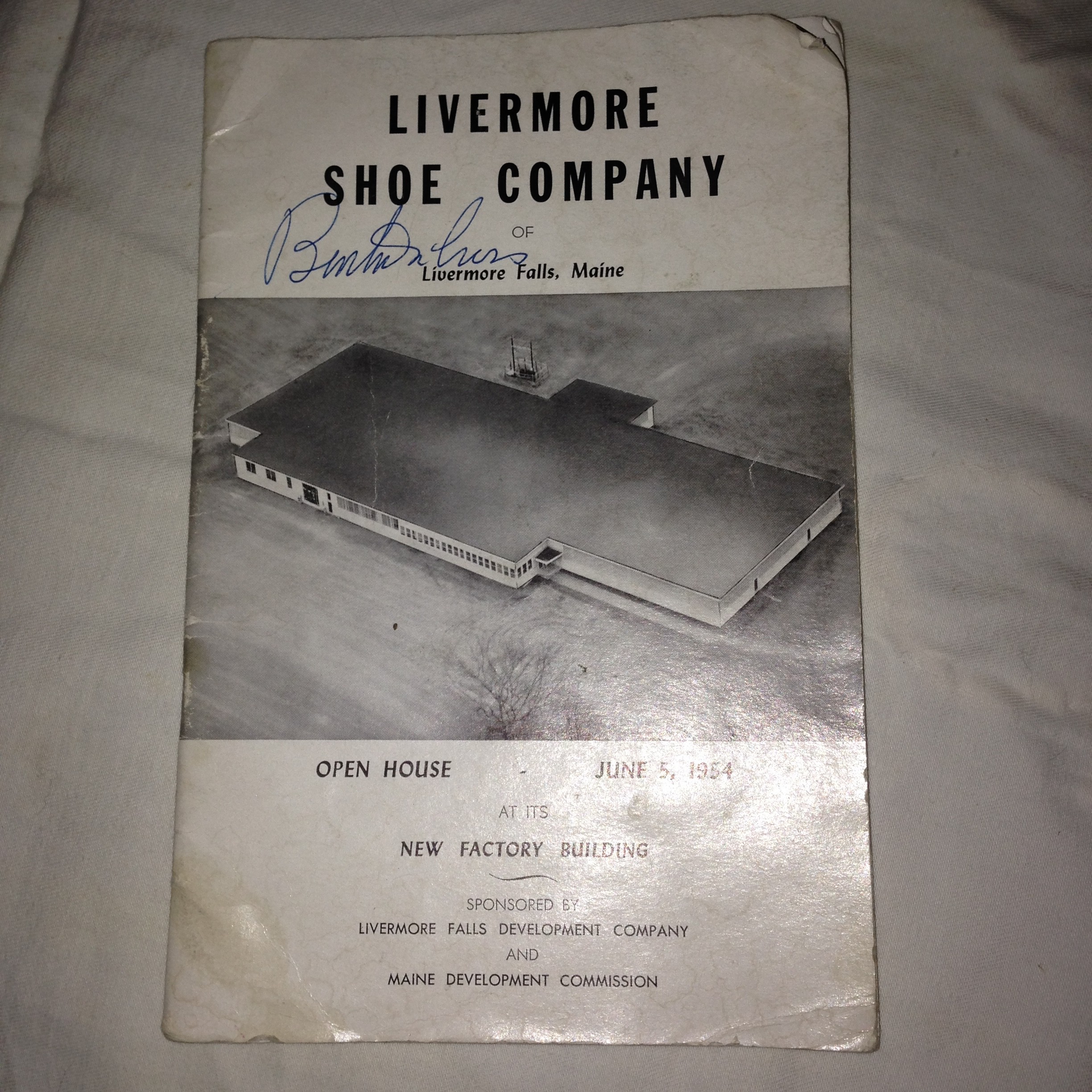 Own a piece of Livermore, Maine’s history! This 36-page Open House / Grand Opening brochure is older than I am! (Albeit not by much.) The front cover was signed by then Maine Governor Burton L Cross, and is filled with advertising and the names of local “Factory Bond Purchasers”.