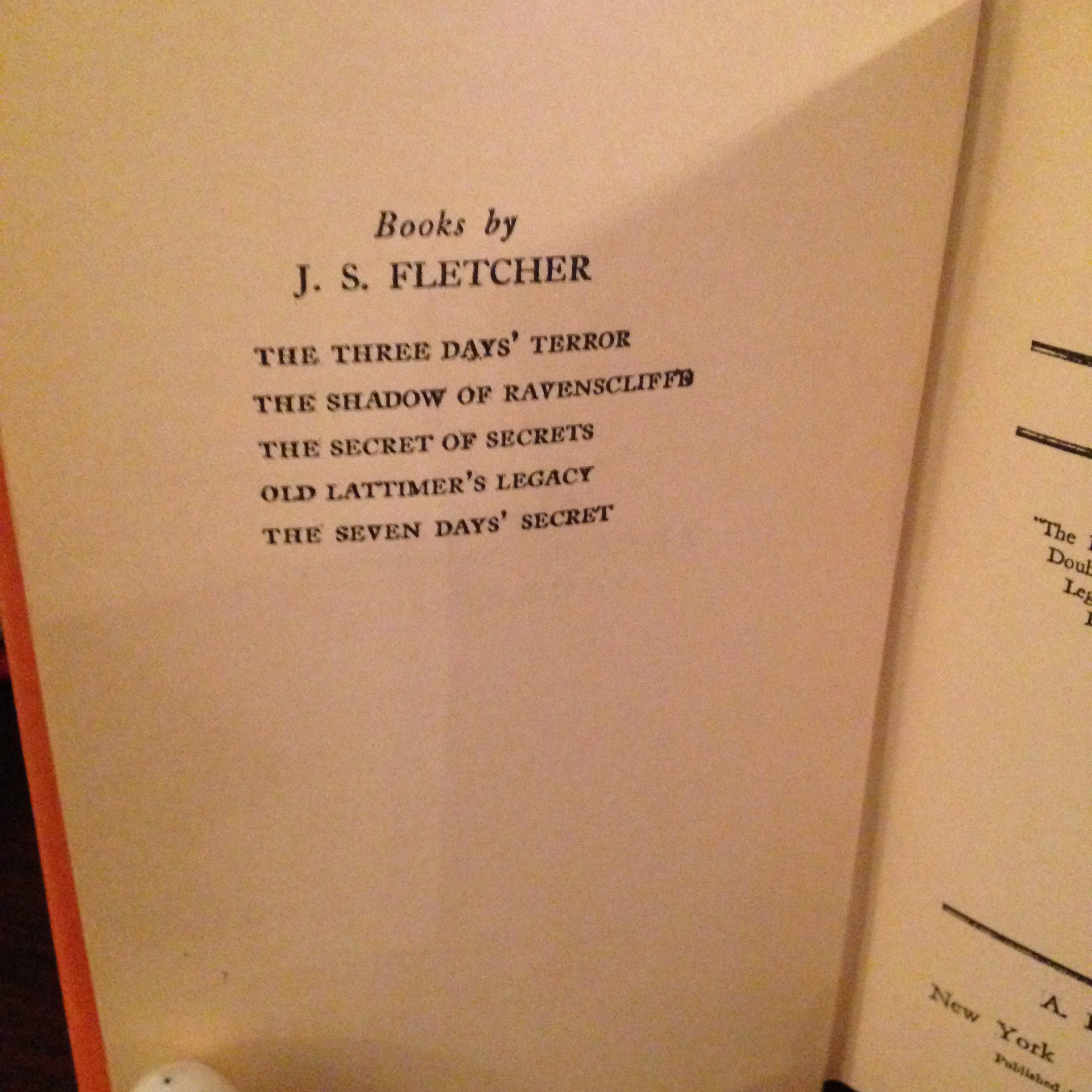 Subject / Topic: Mystery, Thriller / Detective. From the dust jacket “The finding of an unknown man’s body at the foot of a cliff opens this new Fletcher story, at regular Fletcher speed. It is a clear case of murder, of course, when the man’s identity is disclosed. Suspicion is directed to one of the town’s leading citizens. How it finally works out in Mr. Fletcher’s hands, makes a thriller which we are sure will appeal to Fletcher readers.”