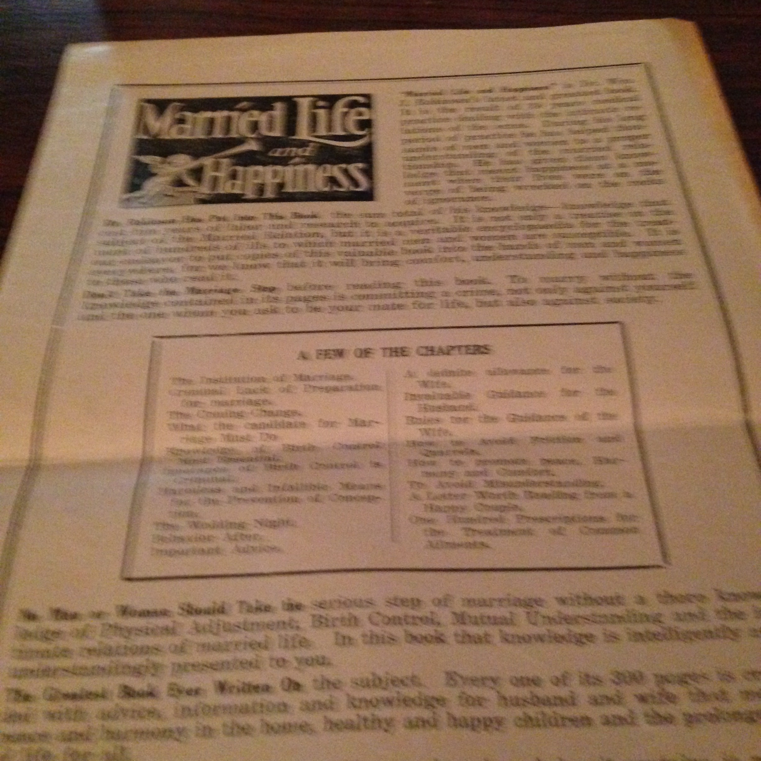 Special Attributes: Comes with inserted typed note about contacting the author (see photos); several flyers from the publisher “Truth Publishing Company”, and a separate booklet of 90+ pages called “What Every Girl Should Know” that includes chapters on “Puberty, “Sexual Impulse” and “Some of the Consequences of Ignorance and Silence” and which has as its dedication “To the working girls of the world this little book is lovingly dedicated”.