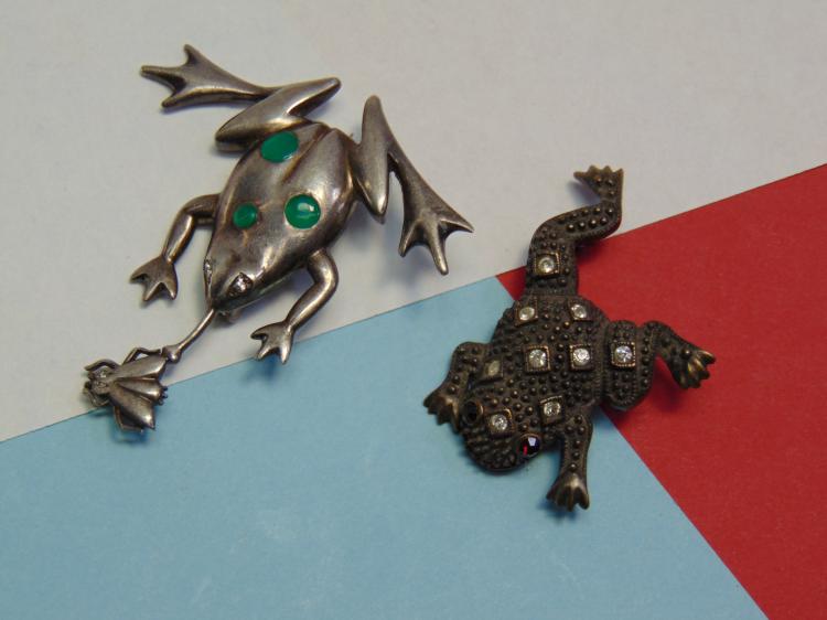 Vintage 14.5g Sterling Silver Frog Brooches. Frog with fly is tested sterling the oter frog is not in good condition.
