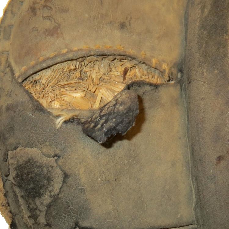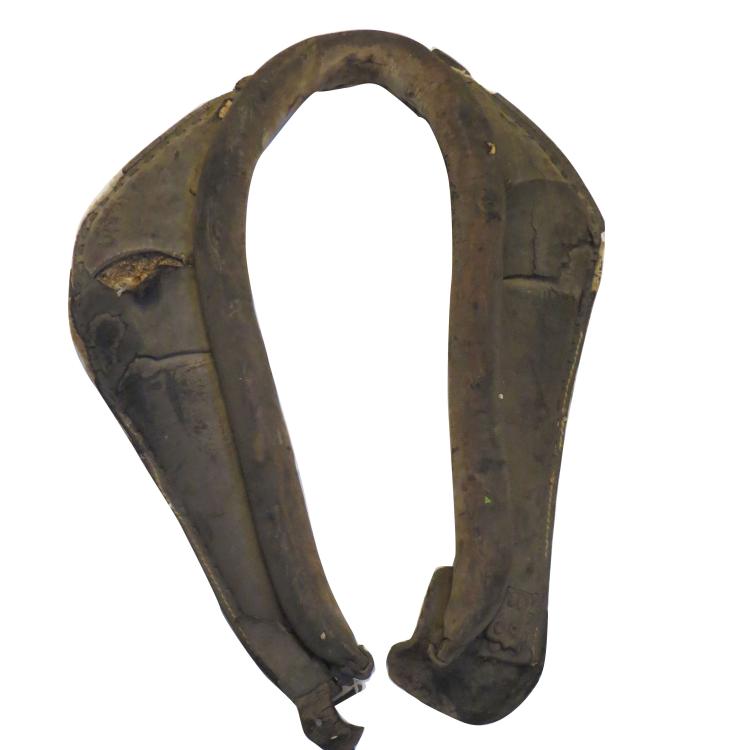 This antique horse collar stuffed with straw arrived in rather more distressed condition than we had planned on, and as a result, we really don’t think we can sell it for what we’d expected, based on the description from the auction house out west.