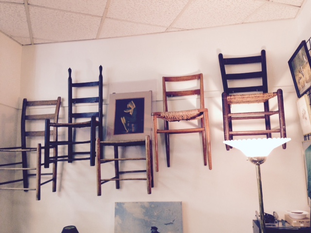 Wall Art Using Lovely Old Chairs – thanks to my ordinarily very black & white engineer husband John for the idea!