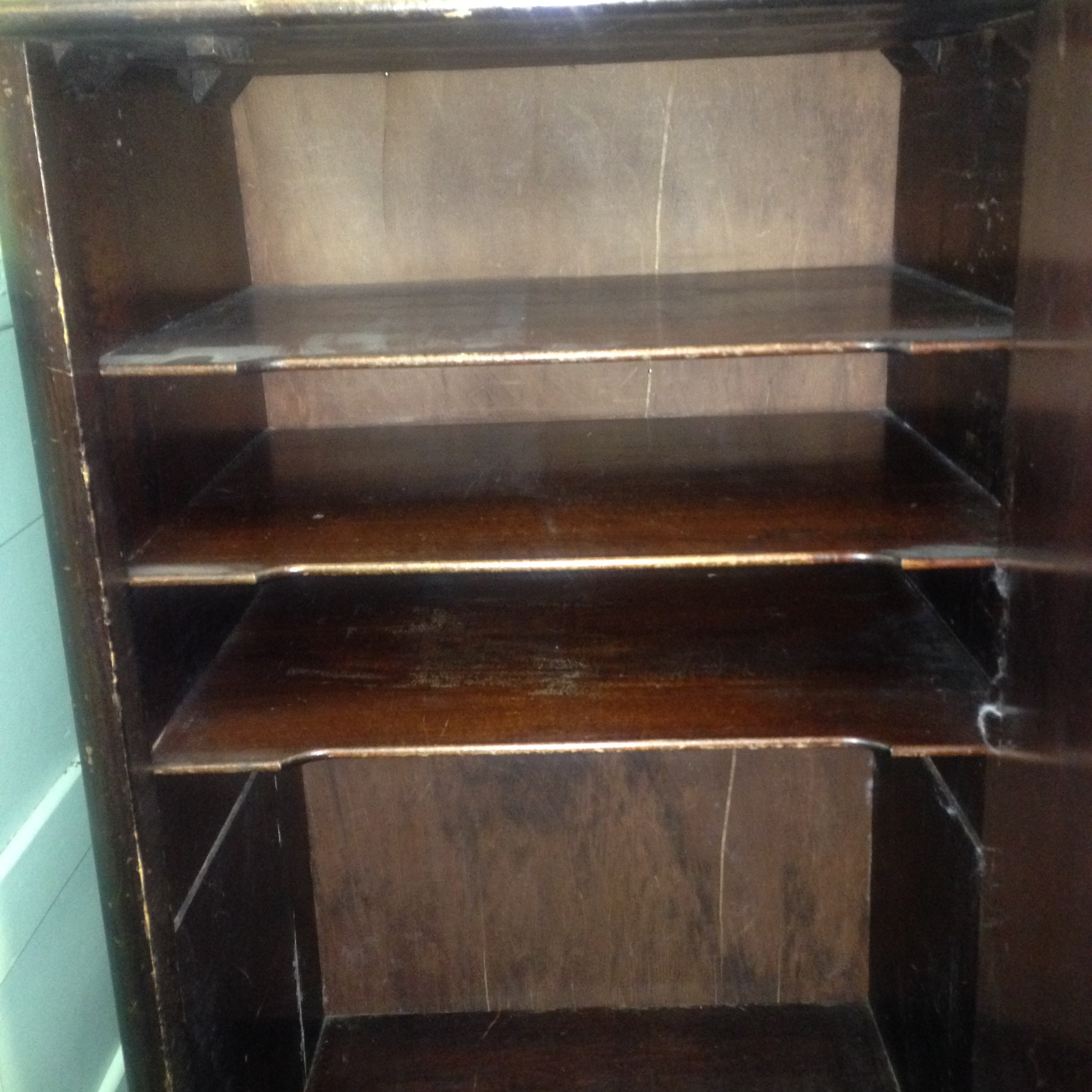 This vintage music cabinet has seen better days, but it’s still a wonderful piece. (We have a similar cabinet at home, but it doesn’t have the mirror this one does.)
