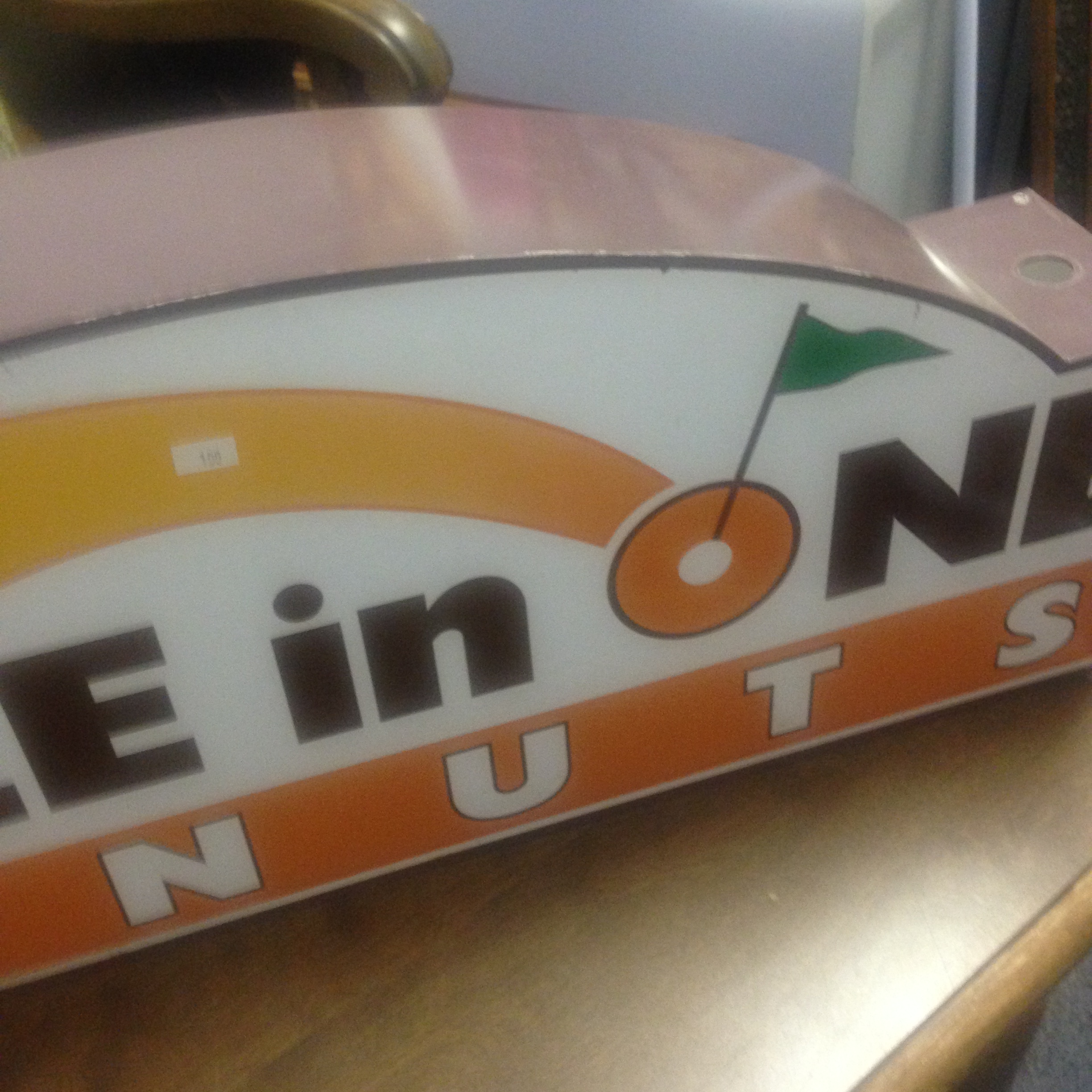 If you’ve ever wanted to open a doughnut shop with the catchy name of Hole in One Donuts, here’s the sign already made!