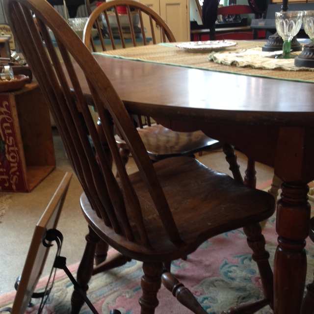 We have a good, solid – and inexpensive – dining room table with 3 matching chairs available! While it does have a few dings & scratches, this maple set is well worth the money at $95.00!