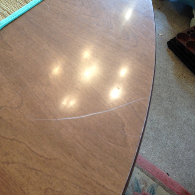 Condition: The table and the 3 matching are sturdy and in very good condition, except for some dings and scratches that you can see in the pictures.