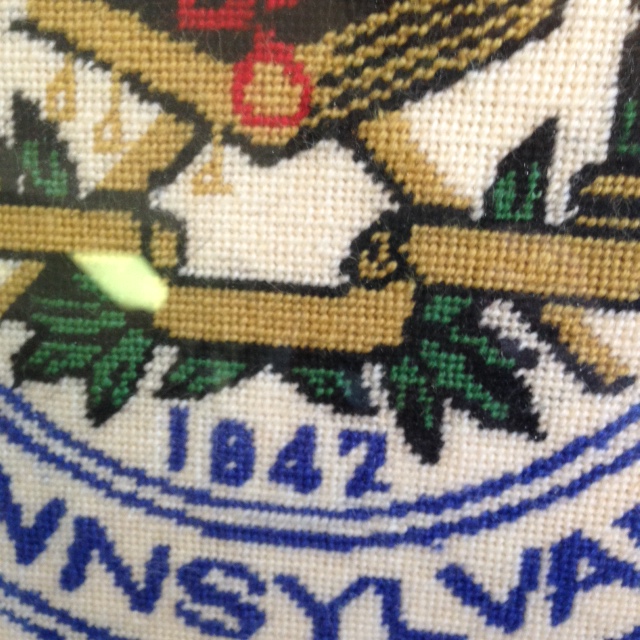 Dimensions: The unsigned watercolor print is about 14.75″W x 9.75″H. The needlepoint is 19″x 19″.