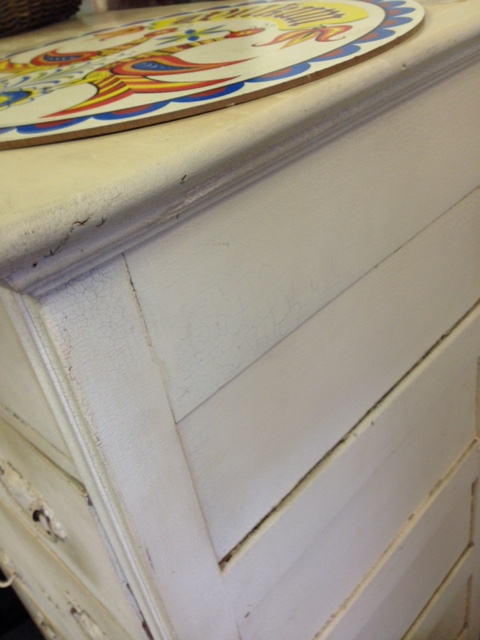 This antique white dresser is lovely… and has great details that you would ordinarily have to pay a lot of money for!