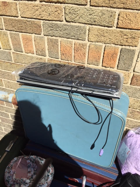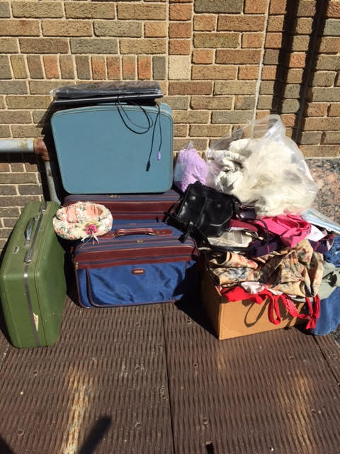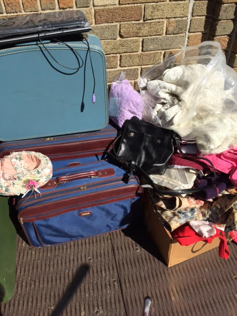 Clothing, curtains, suitcases (in good condition – one has been taken already!), pictures, an old turntable (doesn’t work), etc.