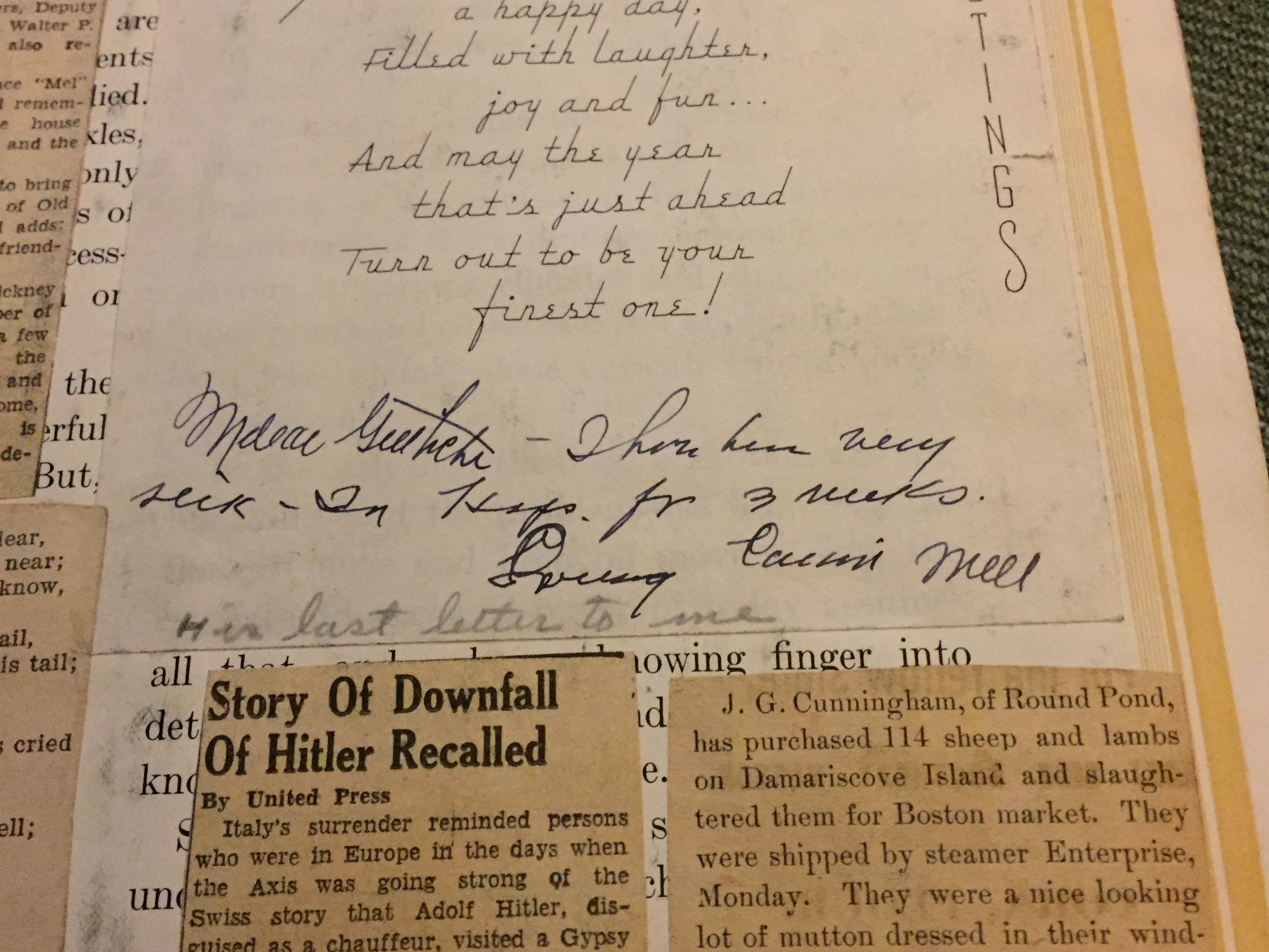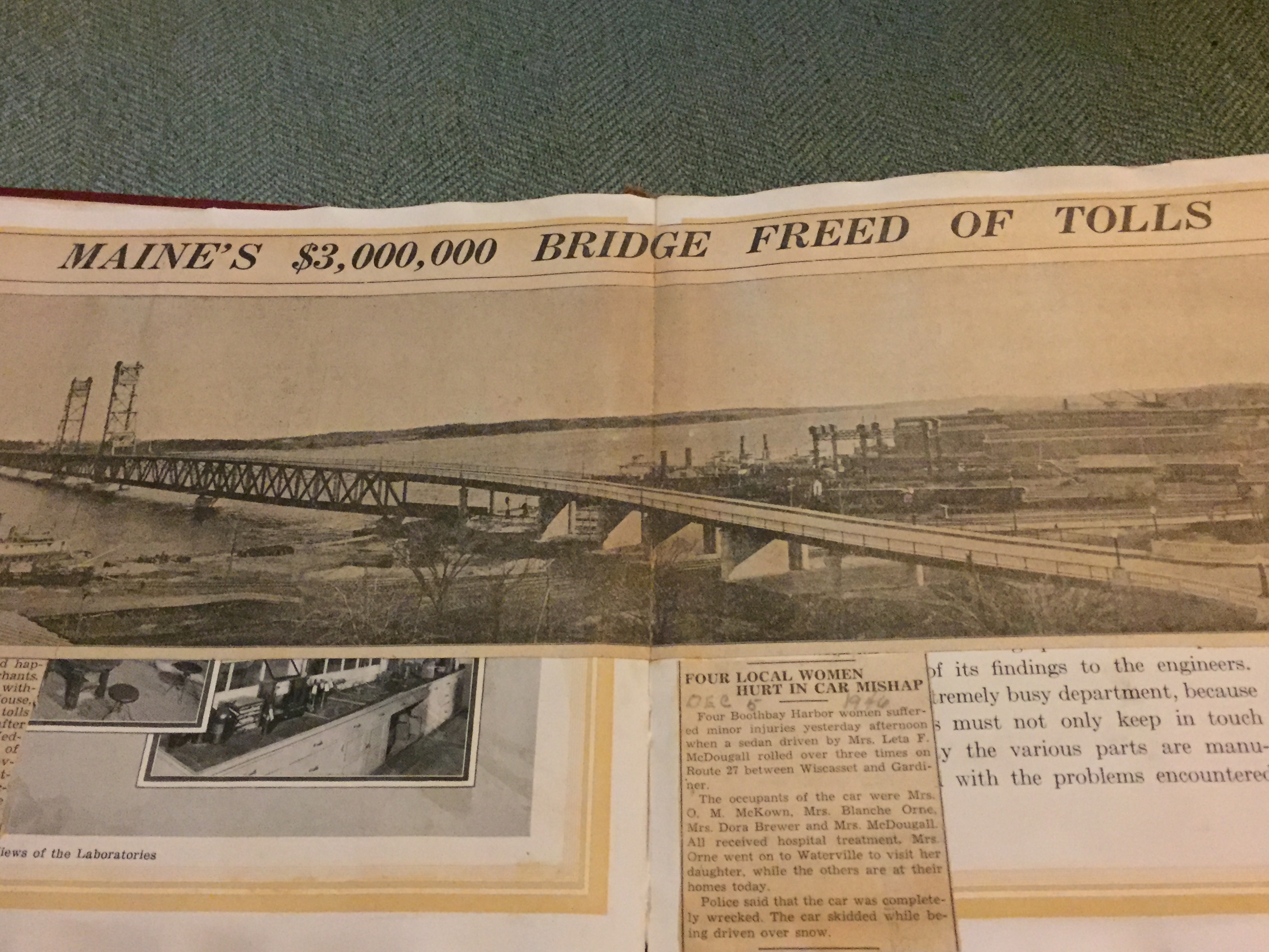 This was originally a book about the Buick Motor Company titled “The Factory Behind The Car”, but over 70 years ago, an avid Maine news junkie by the name of Gertrude L. McKown, of McKown Hill in Boothbay Harbor, turned it into a scrap book, which includes newspaper clippings and other articles and information pieces from about 1940-1946.