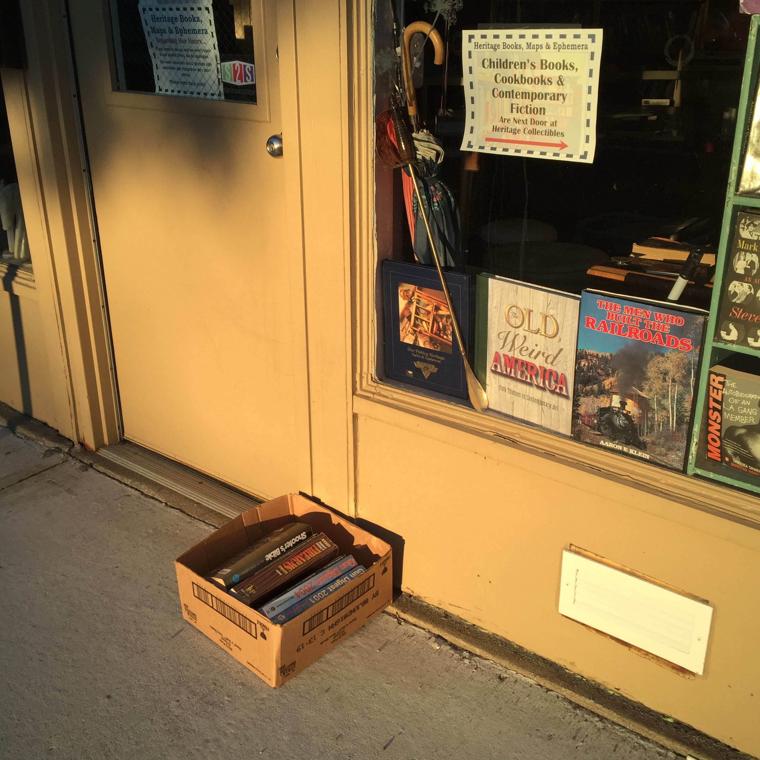 FREE older gun catalogs, outside Heritage Books & Maps, 5 Park Street in Lewiston.