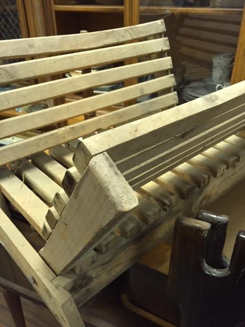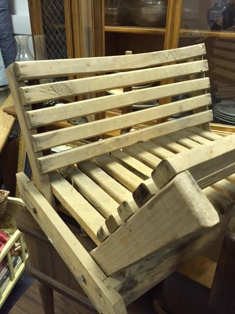 We were told that this was an old magazine rack which it certainly could be, but it seems more likely that it’s a rustic fireplace log holder. I think. Both sides move open and shut, although the reason for that is unclear – it could just be for ease of storage or carrying.
