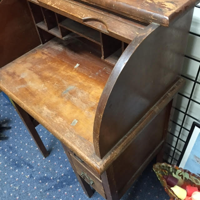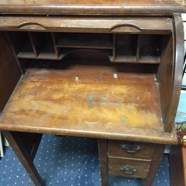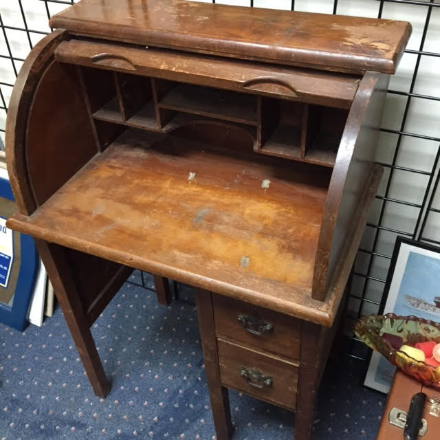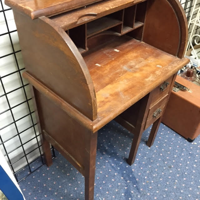 This is a great little rolltop child’s desk! Look at the cool pigeon holes and the two bonus drawers!