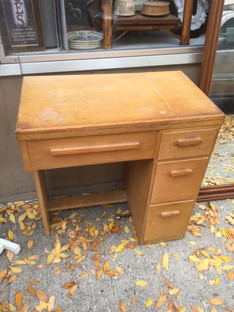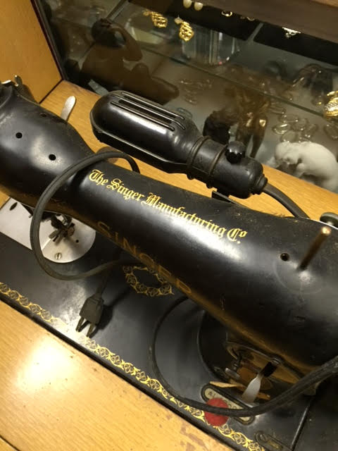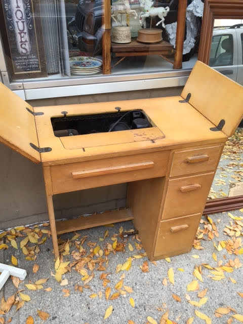 We now have two wonderful vintage sewing machine cabinets, with the original sewing machines intact and inside.