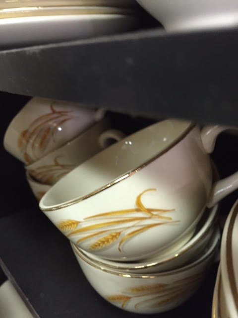 We have a small selection of 1950s era Golden Wheat pattern dishes.
