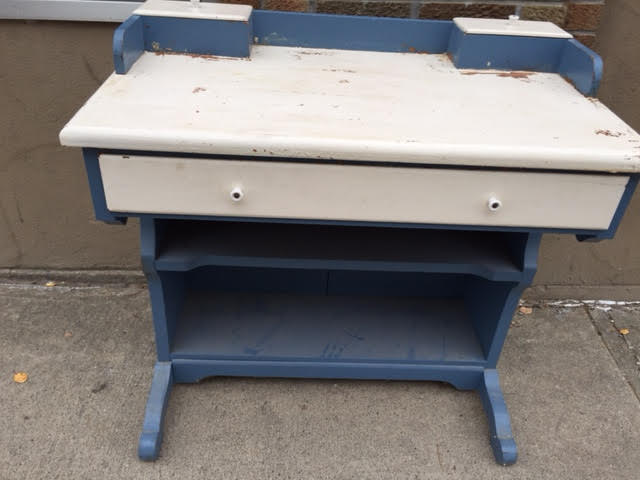 It’s clearly been well-loved – despite the attempt to spiff it up with some additional paint – but is in excellent structural shape. It’s pretty lightweight; I’m not very tall or particularly strong (since age & arthritis are doing a number on me) but I can easily carry it.