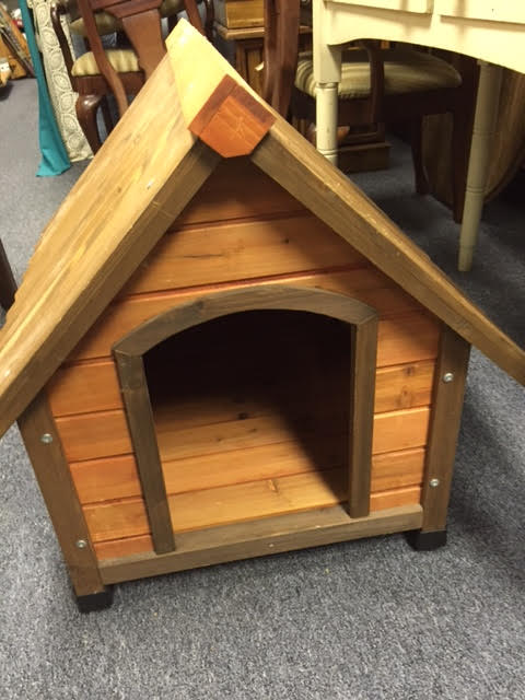 We got this used dog house on the chance that we could set it up inside our home (with a small rug and blankets) for our little Rudi. However, it’s really too big for anywhere inside the house, and we don’t leave the dogs outside on their own long enough to make it worthwhile.