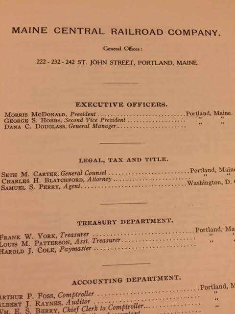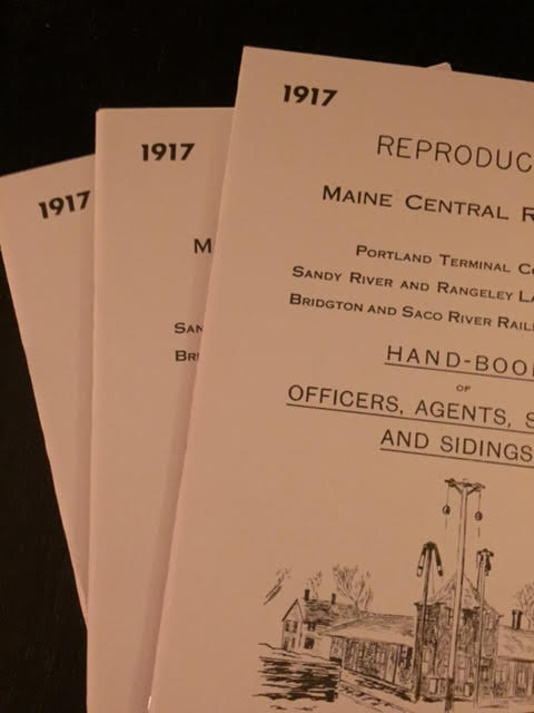 Among the several sets of reproduction railroad handbooks we picked up at a recent auction were these repros of the “Maine Central Railroad, Handbook of Officers, Agents, Stations and Sidings” from the original 1917 edition. We have three of these 40-page handbooks.