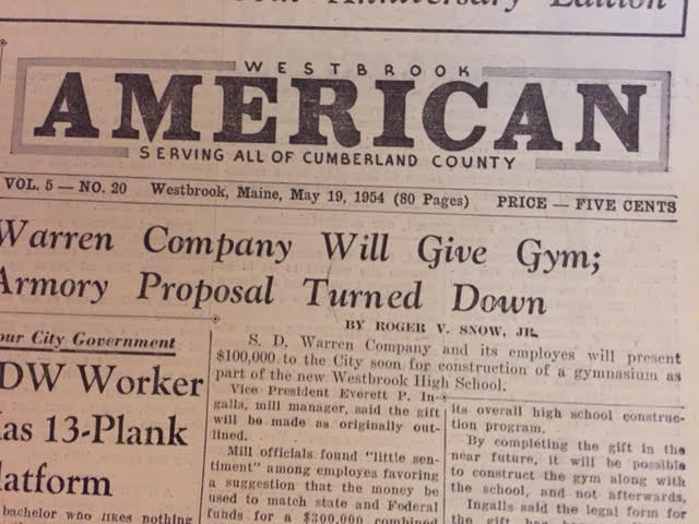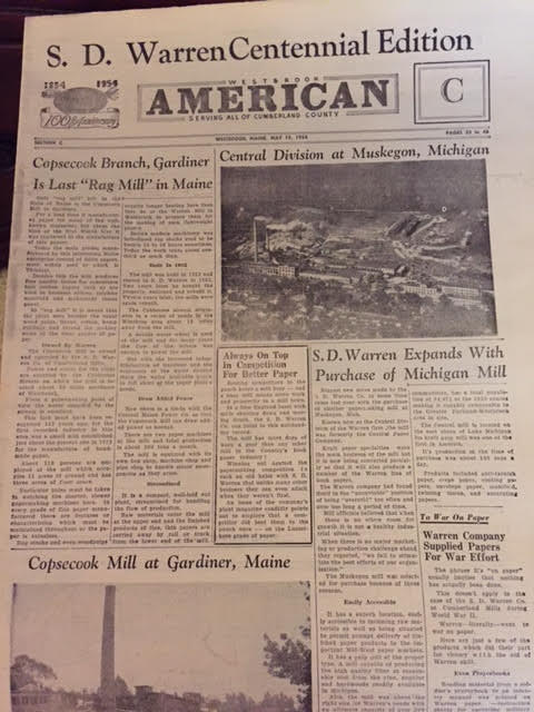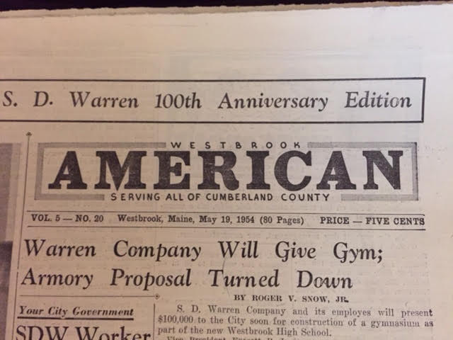 The May 19, 1954 issue of the Westbrook American devoted 64 pages to S D Warren’s 100 year anniversary. That paper only cost 5c!!