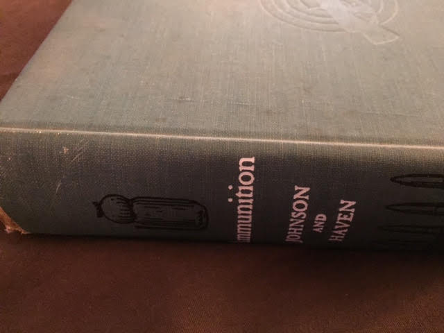 - Ammunition, by Melvin M. Johnson Jr and Charles T. Haven – Its history, development and use, 1600-1943 – .22 BB Cap to 20 mm Shell. Hardcover. 360+ pages. Includes foldout ballistics charts. 1943; 1st edition. Condition: Good. Has some age-related darkening of the inside covers and pages. $24.95.