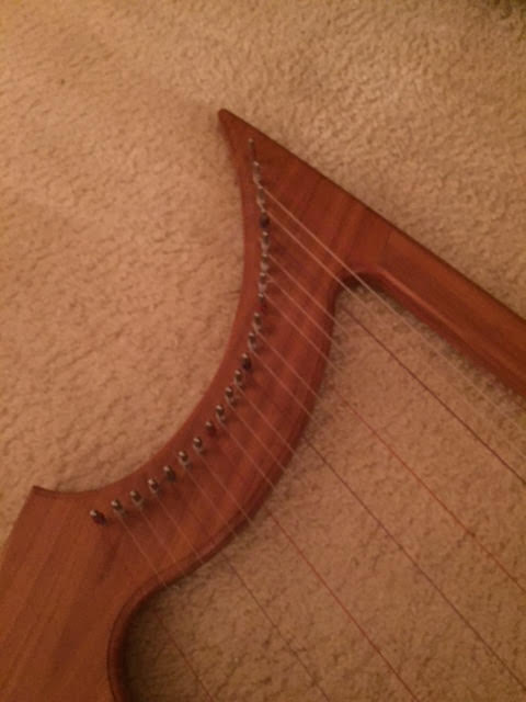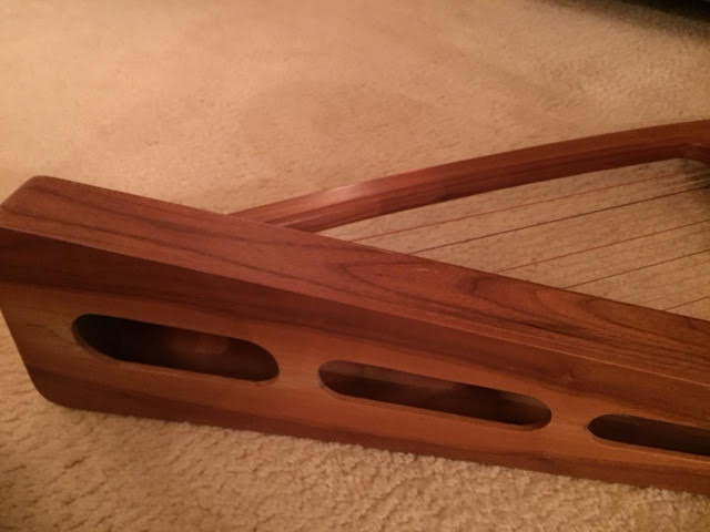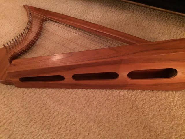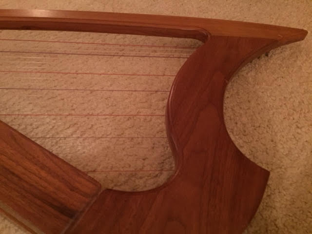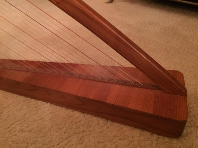 This is a beautifully made Celtic style, 22 string harp. It is absolutely beautiful in its simplicity and the wood is just lovely, although I don’t know what kind it is.