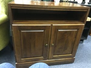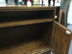 Some of our more project-oriented or artsy customers might consider using this piece for something other than a television stand; by butting it up against the wall, the top would remain motionless… and it could be made into a great little coffee & tea station, or even a mini bar! A little black paint and you have a piece with a very modern look! (One customer actually did that with a previous piece… what a great project!)