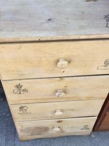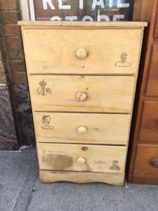 This sweet little child’s chest of drawers is good and sturdy, but lightweight. It came out of an 1800’s era home in Auburn, along with a number of other items we’ll be posting shortly.