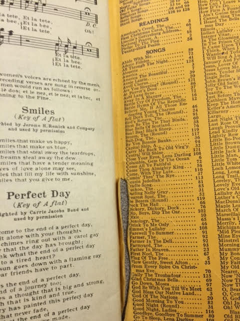 Condition: Considering these songbooks are nearly 100 years old they are in pretty good condition. There are a few rips and tears, and a bit of staining, but the covers are intact and it seems all of the pages are as well.