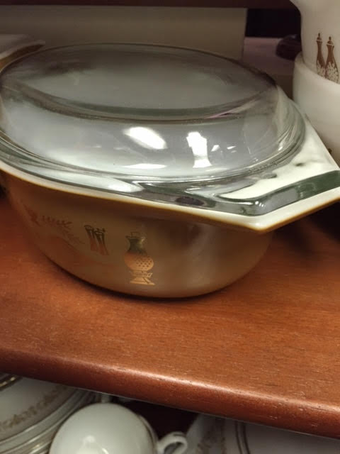 - one 1.5 L gold color (not yellow) Butterfly Gold casserole (1979 redesign) #474-B in good condition but no lid – Was $10.00; now $7.00 – save 30%!