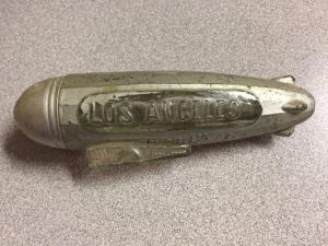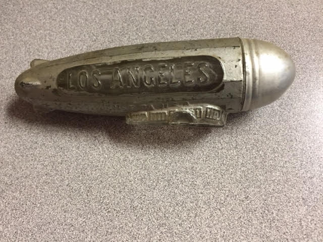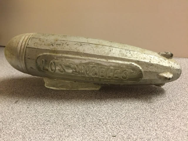 Wow! Take a look at this! It’s a Vintage Avor Glass Candy Container – Los Angeles Blimp! (Or maybe it was supposed to be a zeppelin?) Some, like this one, were painted.