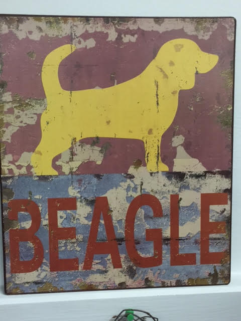 For all of you beagle lovers out there! Here’s a great reproduction tin sign depicting one of those great, silly, wonderful pups!