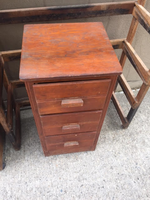 Here’s a nice little side table or chest with three drawers.