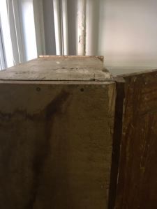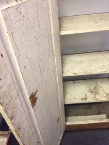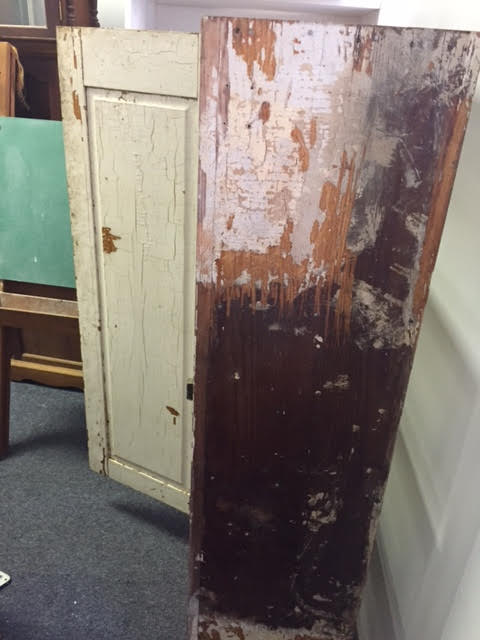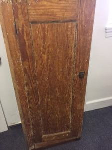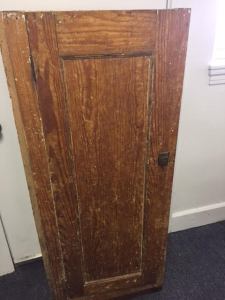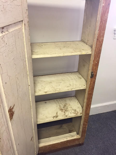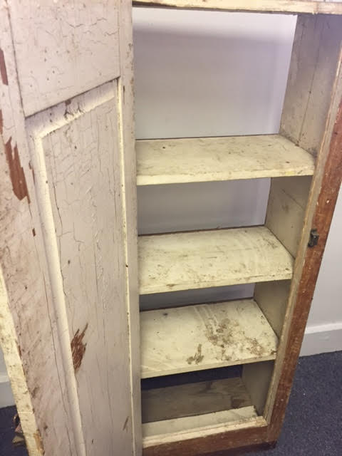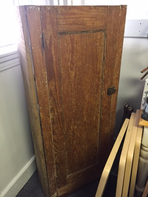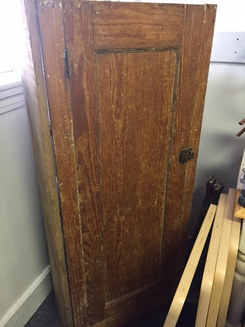 This rustic/primitive jelly cabinet was apparently pulled out of an old building in the Lewiston-Auburn area. We got it from a customer who said he didn’t want to refinish it himself, and didn’t have room to store it.