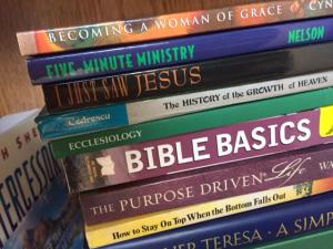 We have a great selection of several hundred contemporary and vintage religious and spiritual books, including some self-help and some for children.