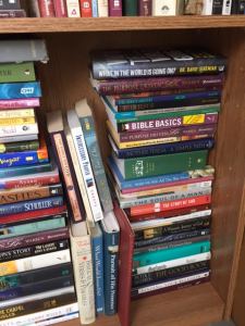 The titles in the pictures above and below are representative of our inventory, although we’ve added a lot more since these photos were taken. (Updated photos coming soon.)
