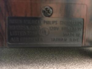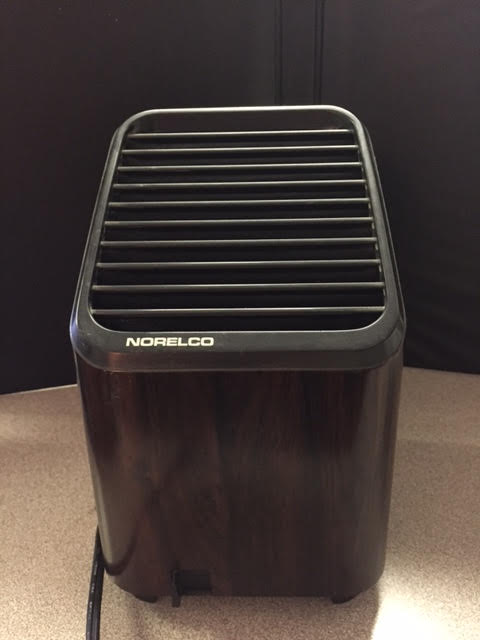 We don’t know anything about this electric desk top “air freshener”, other than the very little we’ve found on-line. It was made about 1970, and the outside is made of plastic with a wood grain look.