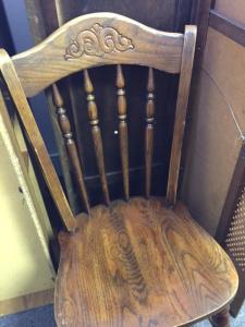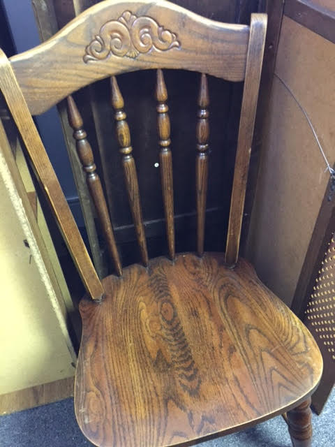 We have three good, solid and heavy dining room table chairs available. There’s a fourth one, but the rungs used for stabilizing it keep pulling apart. It probably only needs some wood glue. These were probably about $125 apiece years ago.