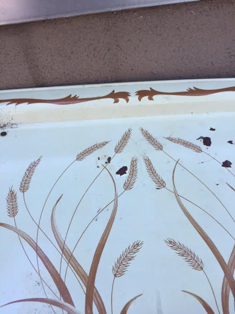Two vintage tv trays for just $5.00 for the pair. (The $10 sign if for the bench they’re siting on!) One has small spots where the paint is lifting; the other has a leg that’s slightly bent.