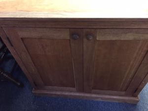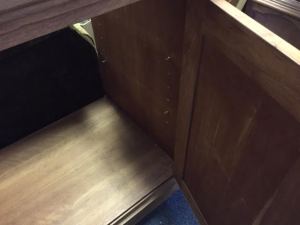 Condition: Very Good… It’s a nice looking piece. It does have a few minor dings but otherwise seems in good shape. And although there are pegs on the inside walls, it didn’t come with a shelf.