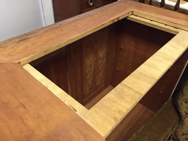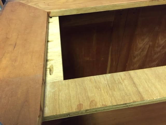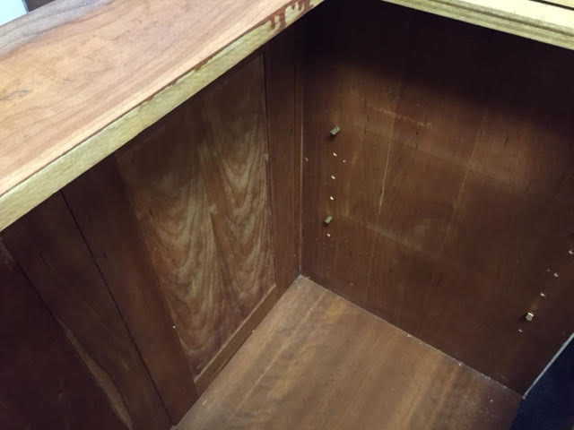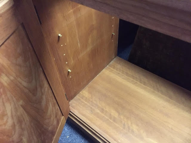 Condition: Very Good… It’s a nice looking piece. It does have a few minor dings but otherwise seems in good shape. And although there are pegs on the inside walls, it didn’t come with a shelf.