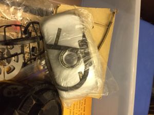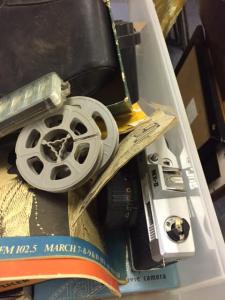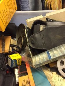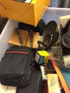 We acquired this box of older cameras and accessories during a recent clean out. My husband knew something about cameras, but I haven’t a clue. I’m pretty sure they aren’t that old. I also think there’s another box with a few camera-related items kicking around in storage somewhere. If I can find it, I’ll add those pieces to this box as well.