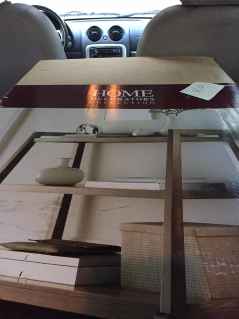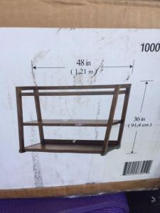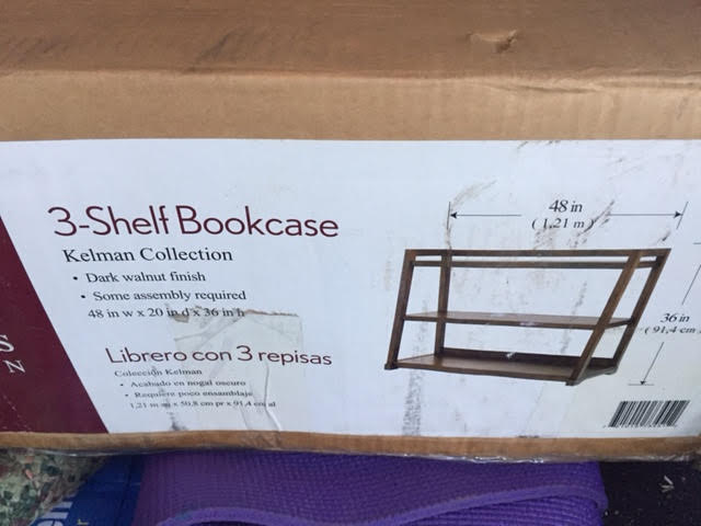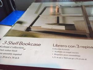 We picked up this 3-shelf Home Decorators bookcase (Kelman series) still inside its unopened box at a recent auction. Amazon has it listed for $59.99; it’s on eBay for $75.00. Apparently the retail price is over $100.00.
