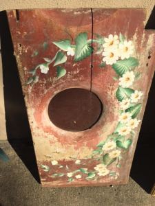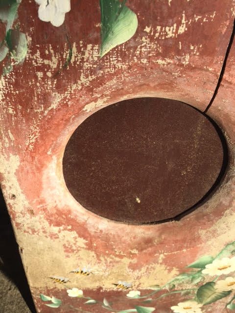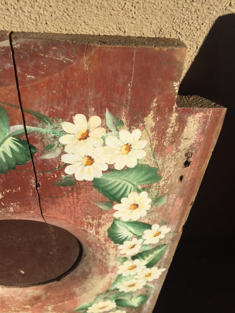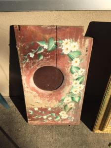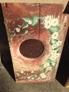 Seriously… when was the last time you saw an old outhouse seat painted up so nicely?