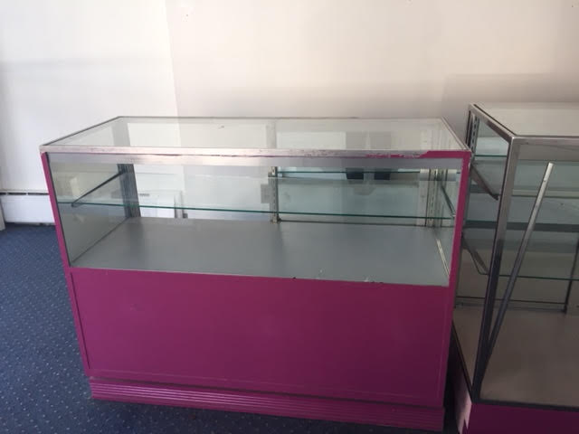 I’d hold onto these two display cases if I had a place to store them, but there’s no room in my garage, so sadly they have to go. You’ll have to pick them up and transport them, and will need at least a couple of people to load them in your truck or trailer.