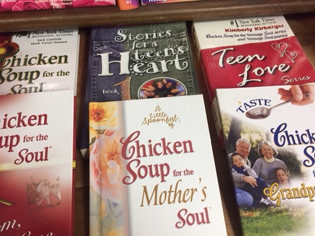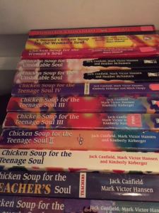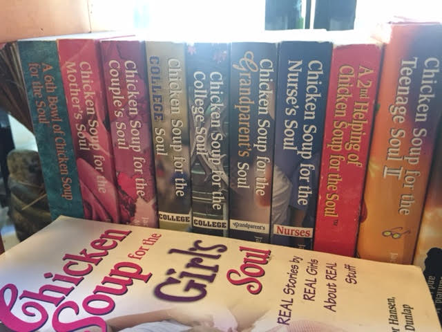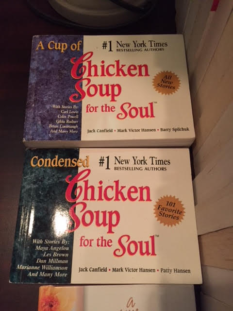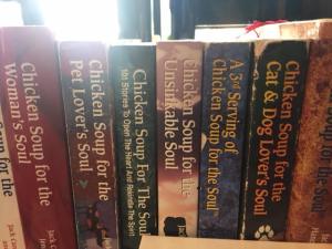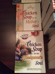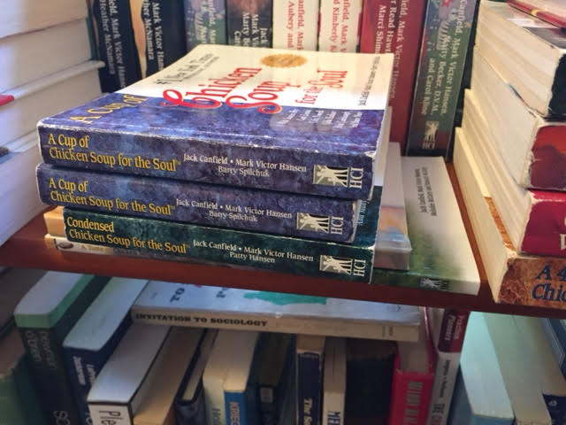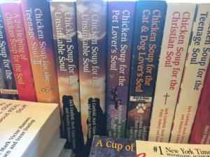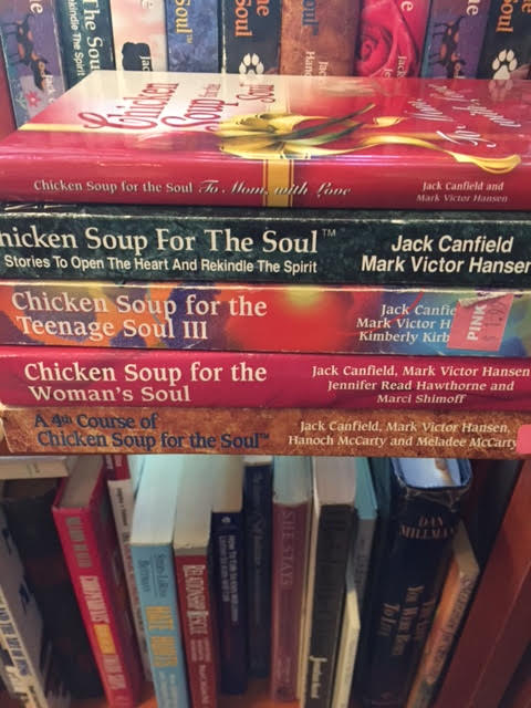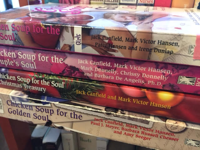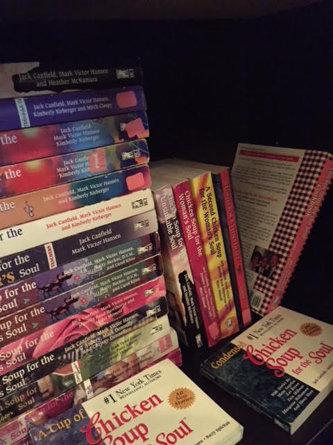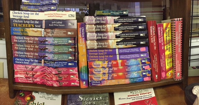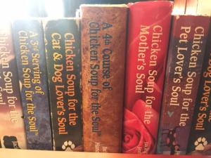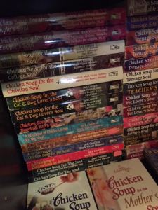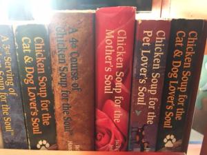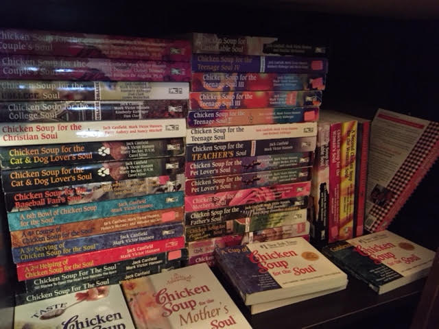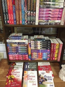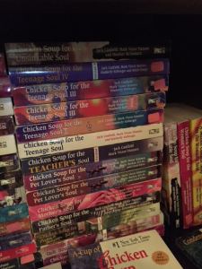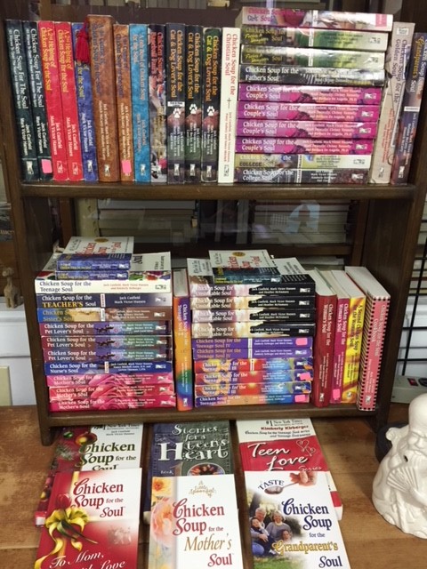 We now have slightly more than 5 dozen Chicken Soup for the Soul Books! To be exact, there are 62 different books, with 38 different titles (we have several duplicates). There are 7 hardcovers.