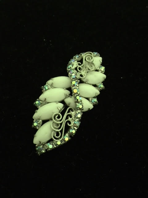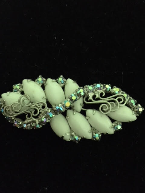 This is a wonderful rhinestone and white beaded broach. (It really is white but my photos didn’t come out that well.)