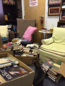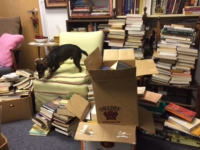 All told, there were at least 200 boxes of books that got dragged into the shop, piled in every available corner and free space. Whew!