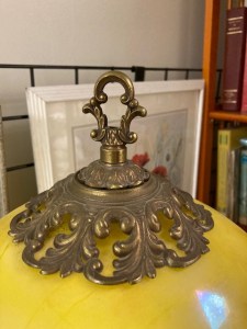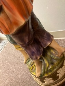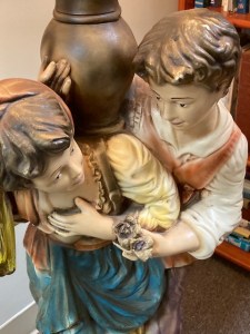 This figural lamp is absolutely stunning. Take a look at the detail on the kids… and the globe is fabulous! Like too many items we find at auctions, this is one I would LOVE LOVE LOVE to keep! Right now, it’s in “storage” in a dark hallway at the office of my other business – and I am thrilled with how it casts a glow down there… so much nicer than the overhead fluorescent bulbs!