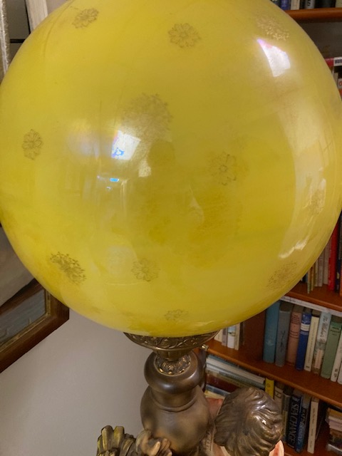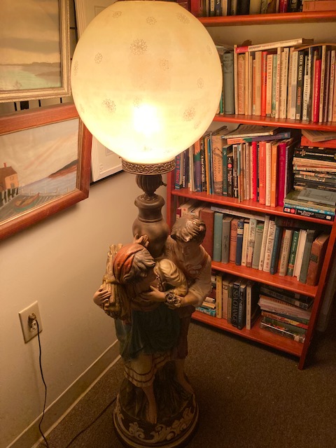 This figural lamp is absolutely stunning. Take a look at the detail on the kids… and the globe is fabulous! Like too many items we find at auctions, this is one I would LOVE LOVE LOVE to keep! Right now, it’s in “storage” in a dark hallway at the office of my other business – and I am thrilled with how it casts a glow down there… so much nicer than the overhead fluorescent bulbs!